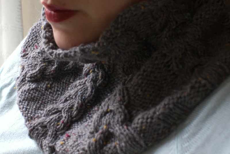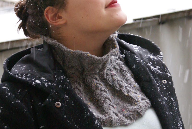 Je voulais me faire un snood bien couvrant, et ces pelotes correspondaient à ce que j’avais en tête. J’ai tout de suite été séduite par ces petites couleurs mouchetées.