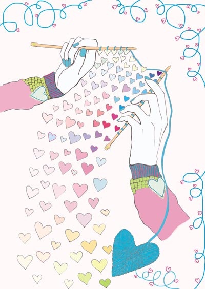 Au fil de mes navigations sur internet, j’ai collecté une jolie petite collection d’illustration trouvées de-ci de-là. Et je me suis rendue compte qu’il y en avait pas mal où le tricot était présent !