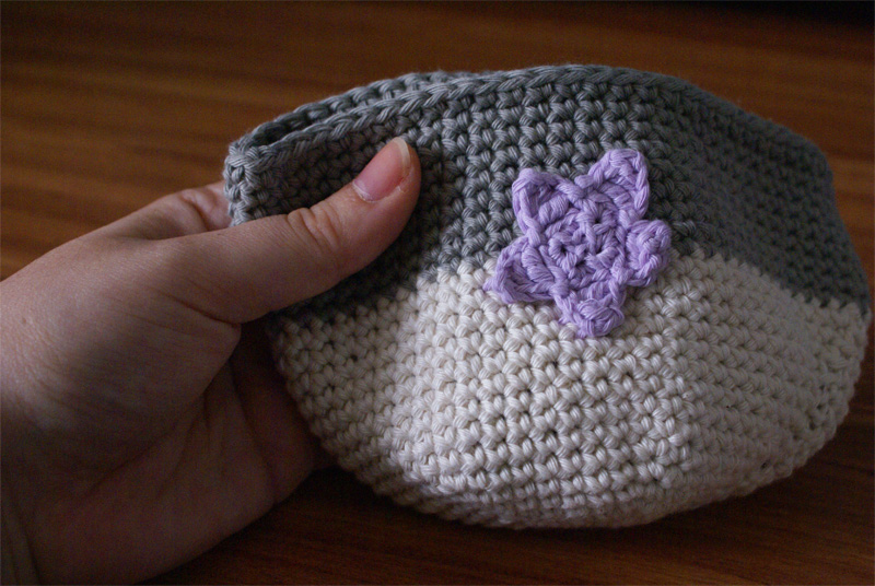 Et comme il me restait encore du fil, j’ai crocheté un petit portemonnaie. Mais malheureusement je n’ai pas trouvé de fermoir dans ma mercerie de quartier ! Si vous avez des bonnes adresses sur Paris, je suis preneuse 😉