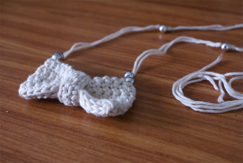 Et puis avec mes restes de laine et les perles du kit, j’ai crocheté un petit noeud et j’ai fait deux sautoirs.