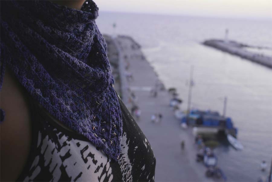 Je n’ai utilisé qu’une pelote, et il est plus court que dans ma tête. Mais ce n’est pas plus mal finalement, ça ressemble plus à un chèche qu’à un châle !