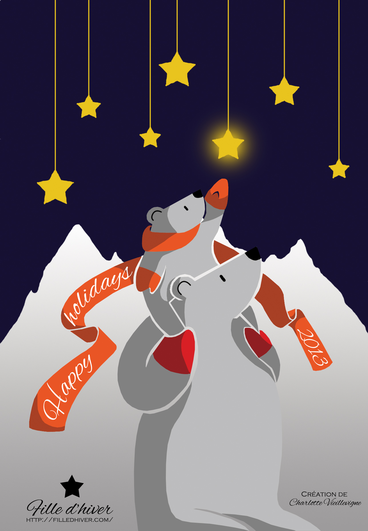 Et bien justement, en parlant de cartes de voeux, j’ai terminé la mienne ! Elle est en cours d’impression, mais je ne pouvais résister à vous la montrer, et à la partager 🙂