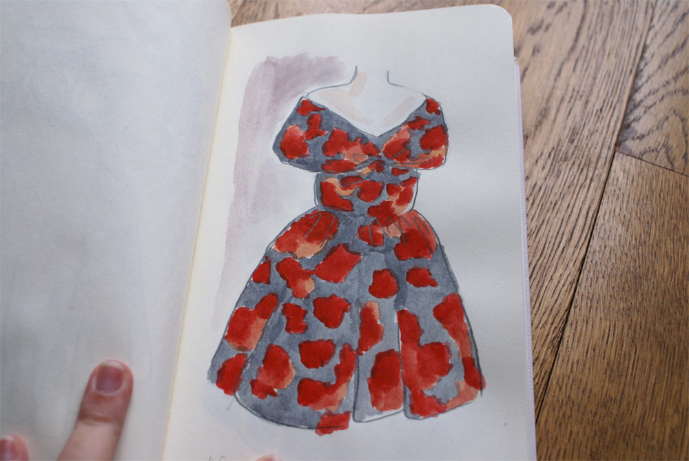 4. Hihi moi j’ai failli ne pas sortir mon carnet de croquis tellement j’avais honte de mes petits pâtés à côté de tous les élèves modistes/stylistes qui dessinaient de pures merveilles en deux temps trois mouvements!! Tes dessins à l’aquarelle sont magnifiques!! On a un peu dessiné les mêmes modèles! Cette expo est tout simplement géniale