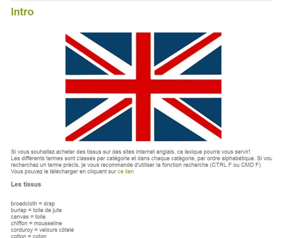 Mais pas de panique !!! J’ai bossé rien que pour toi et je t’ai trouvé deux lexiques Français-Anglais pour t’aider (je l’ai déjà dit dans un autre article, mais je trouve que ce projet s’applique également au tricot, donc ça me tient à cœur d’en parler).