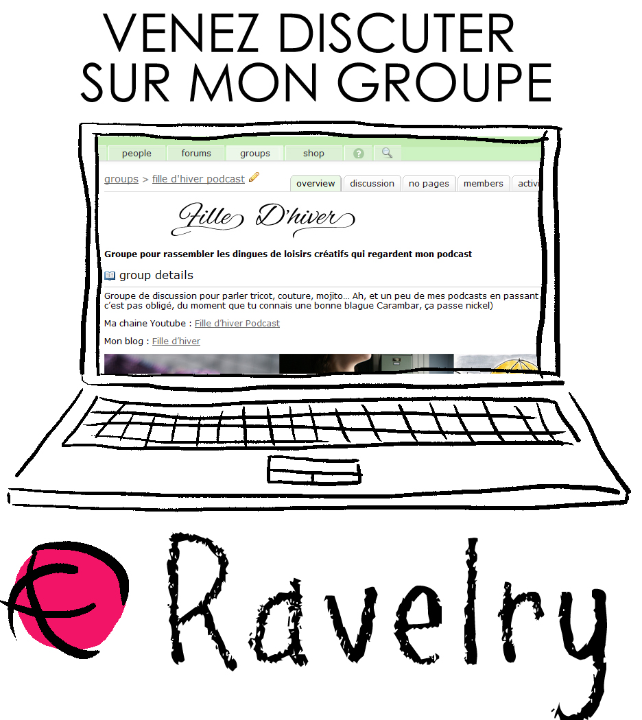 Puis est arrivée la couture, la broderie et la web cam… Et début mars 2015, j’ai commencé à enregistrer mon podcast vidéo pour parler pendant des heures de mes activités créatives à des personnes que ça intéresse VRAIMENT !
