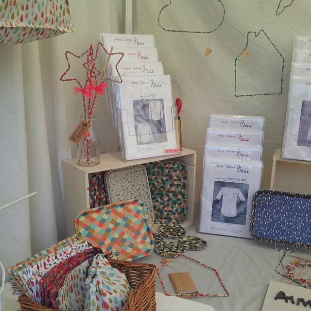 And then Friday morning I had an appointment in Colombes (city suburb of Paris). On the bus in my way back, I see a flyer « Cherry Festival on June 13-14-15, » and then I had a revelation: but yesssssss, Aime comme Marie has a stand on this market! So,I stop, I look for the stand, I gossiped a little bit with Mary and … Well yes, it was to be expected: I HAVE BOUGHT SOME NEW SEWING STUFF!!