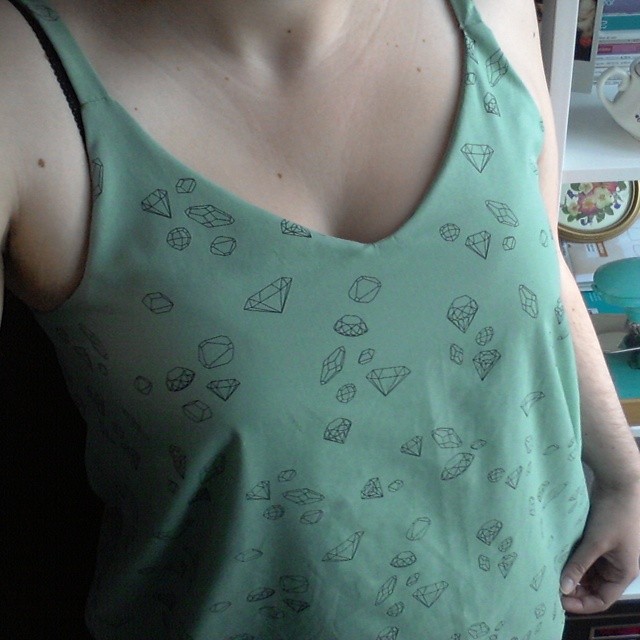 And Friday night at 11pm (the same day eh, for those who do not follow!) I say « but what am I going to wear tomorrow for the knitting event? My little black skirt OK, but which top? I have nothing to wear, so I must sew a little top … And as my fabric diamonds was dry and it screamed me « cut meeeee », well, here …