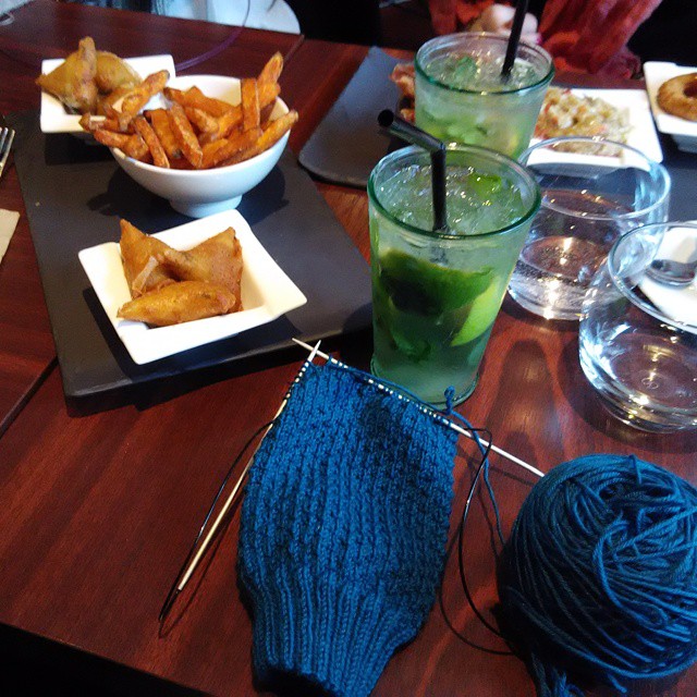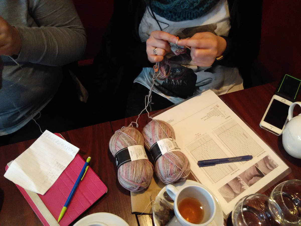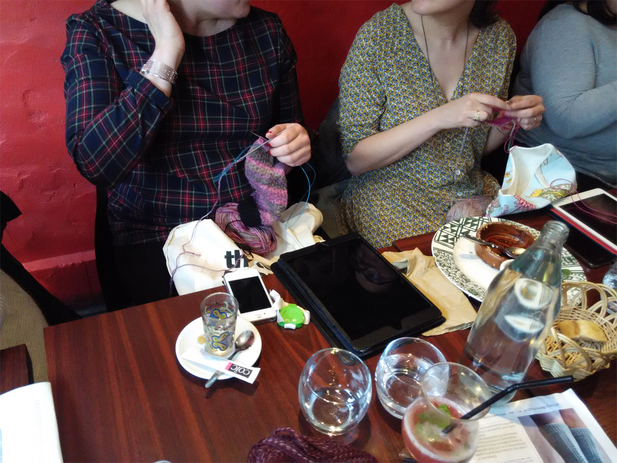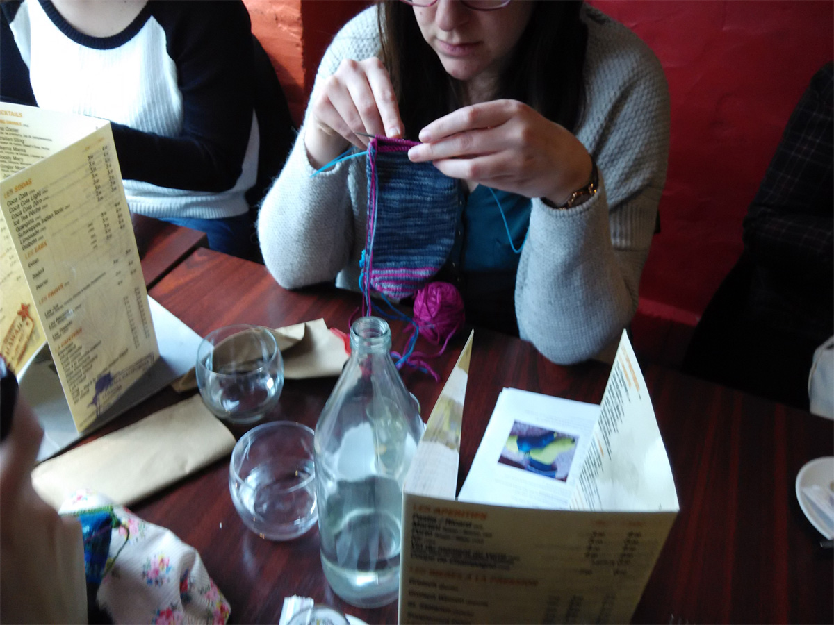 Ah ouais, ça commence fort avec les questions qui fâchent ! Ca dépend, franchement. Je marche par période : parfois je ne touche pas mes aiguilles pendant 3 semaines, et juste après je fais des petites journées de 8h de tricot. Mais j’essaie d’avoir toujours un petit encours sur moi, pour le métro, ou quand t’as rdv chez le médecin-mais-que-tu-te-demandes-à-quoi-ça-sert-parce-qu’-il-a-toujours-3/4-d’heure-de-retard-ce-bat*rd…